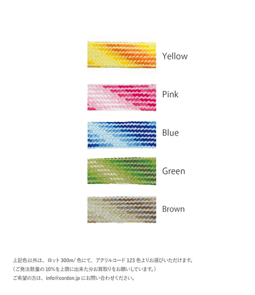 | 別注色について | ロット300m/色にて、【アクリルコード】123色よりお選びいただけます。 |