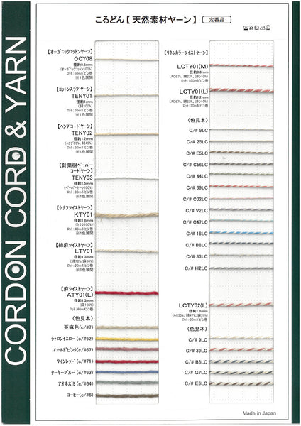天然素材ヤーンサンプルカード A4サイズ(210mm×297mm)