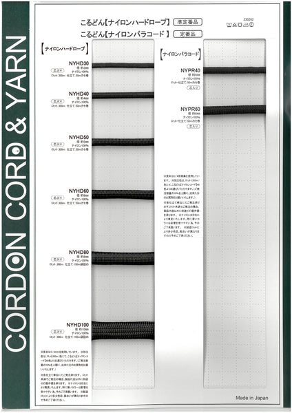 ナイロンソフトコード(ナイロンパラコード)・ナイロンハードロープサンプルカード A4サイズ(210mm×297mm)