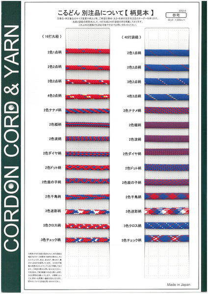 別注柄見本 16打丸紐・40打袋紐サンプルカード A4サイズ(210mm×297mm)