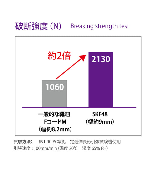 一般的なポリエステル靴紐の約 2 倍の耐摩耗強度がありながら、ほどけにくいコードです。 引張強度:2130N |