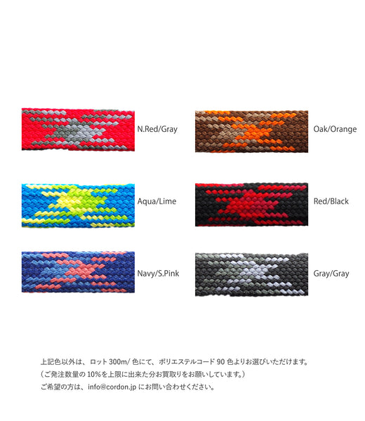 | 別注色について | ロット300m/色にて、【ポリエステルコード】90色よりお選びいただけます。 |